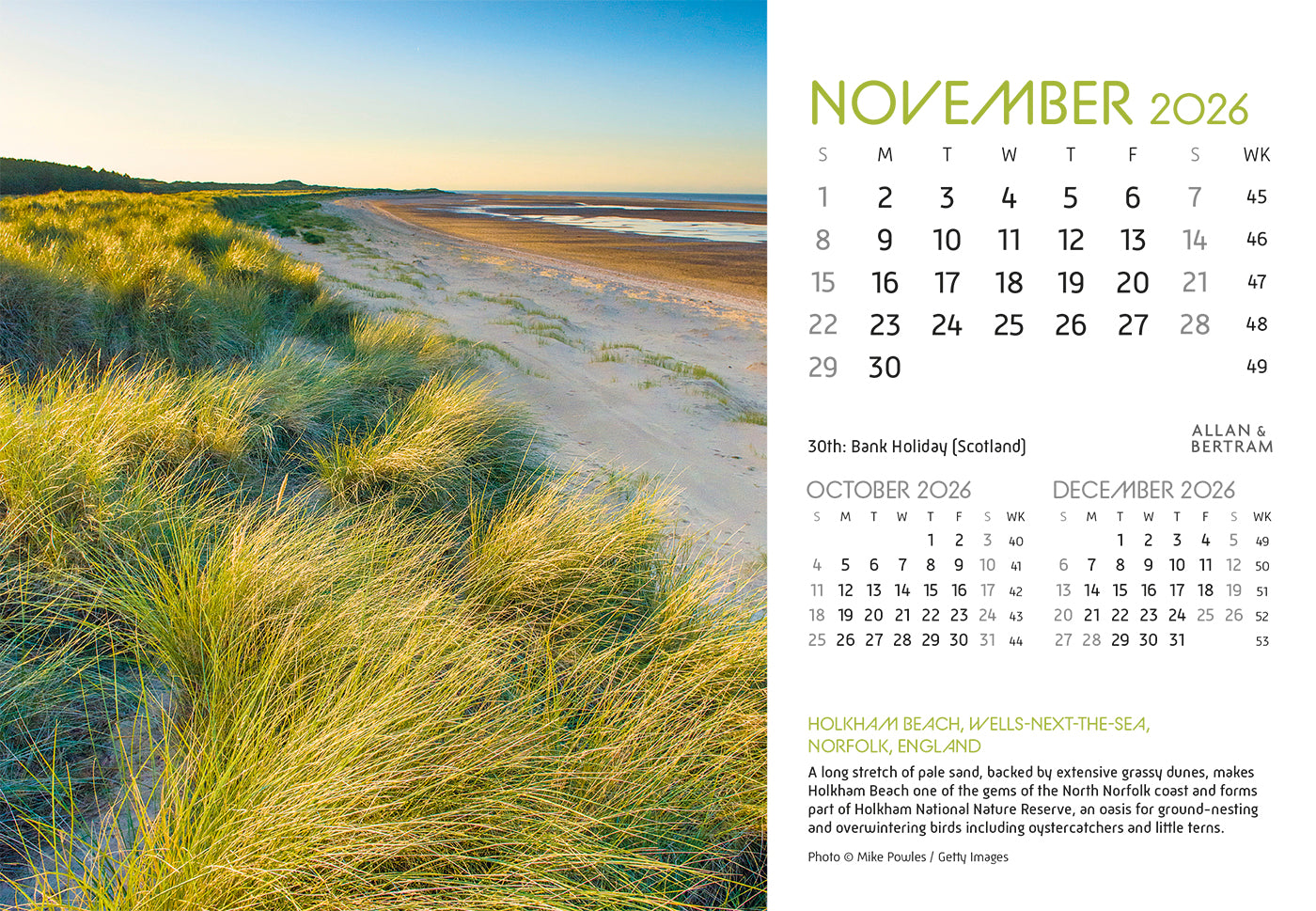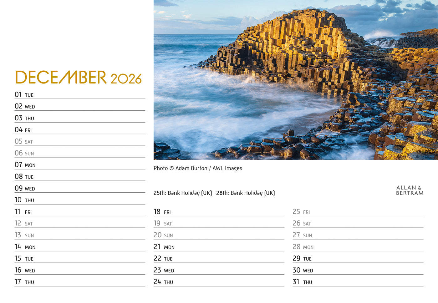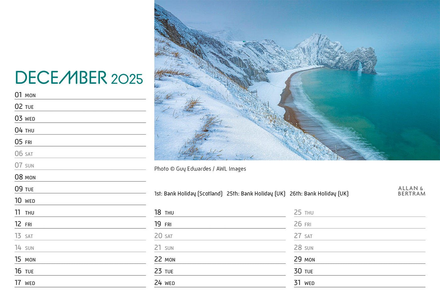 UK Mainland delivery is £8.50 for a single calendar. For two - five calendars, delivery is £12.50. For a single refill, delivery is £5.00.