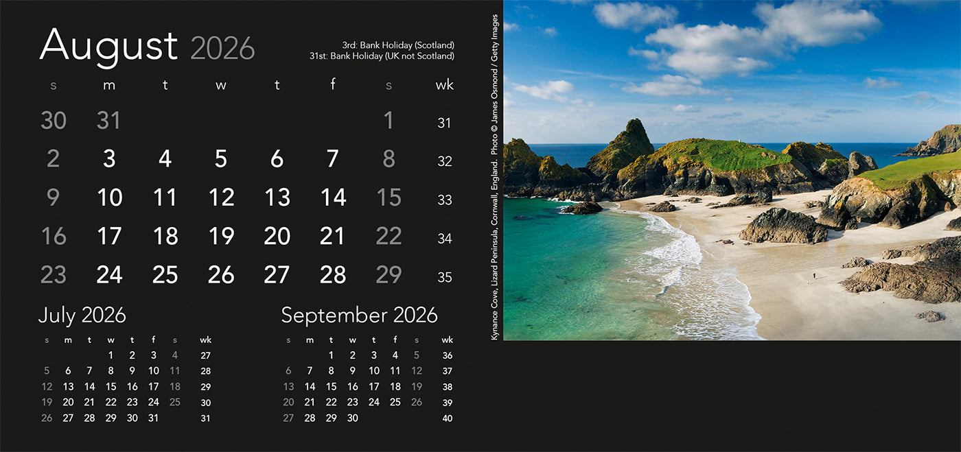 UK Mainland delivery is £8.50 for a single calendar. For two - five calendars, delivery is £12.50. For a single refill, delivery is £5.00.